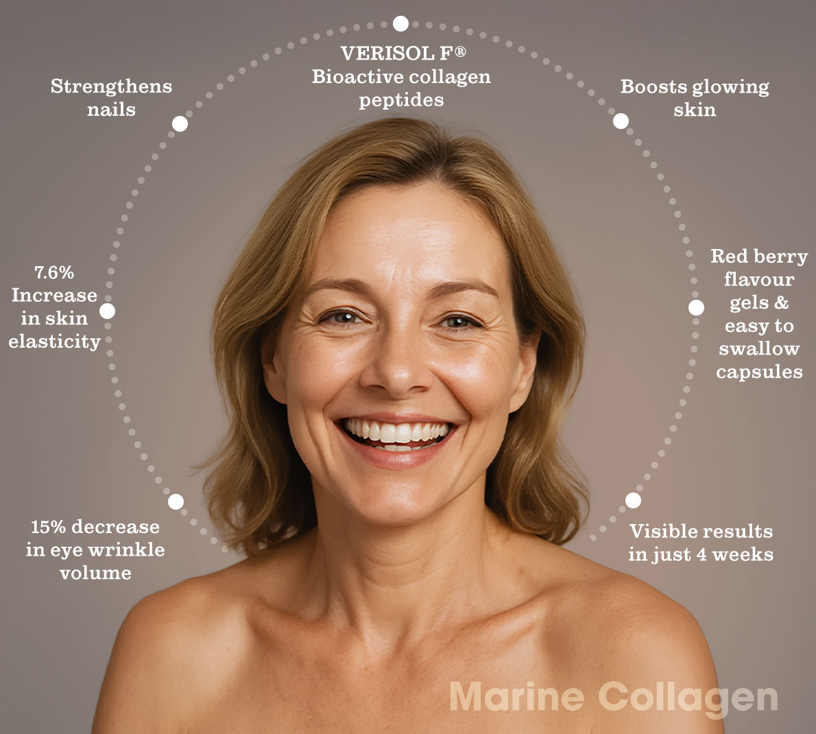 Marine collagen is extracted from fish skin and scales and is naturally high in Type I collagen—the most abundant collagen in human skin. Since Type I collagen makes up 90% of the skin’s structure, marine collagen is especially effective for boosting hydration, improving firmness, and reducing signs of ageing.