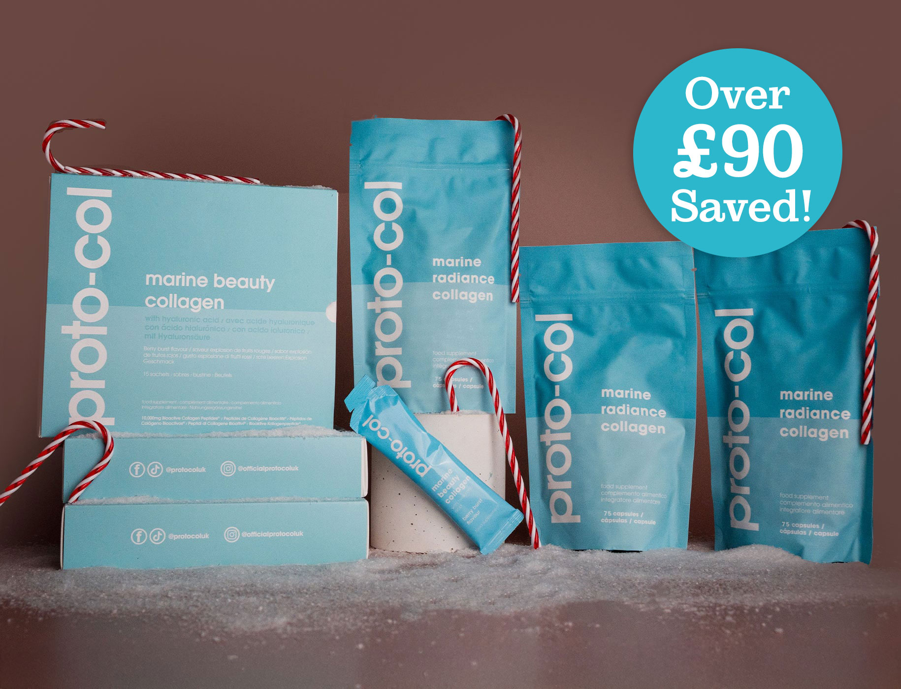 Glow from within with our 3 Months Ultimate Collagen Glow Bundle. 60% OFF- over £90 saved!!