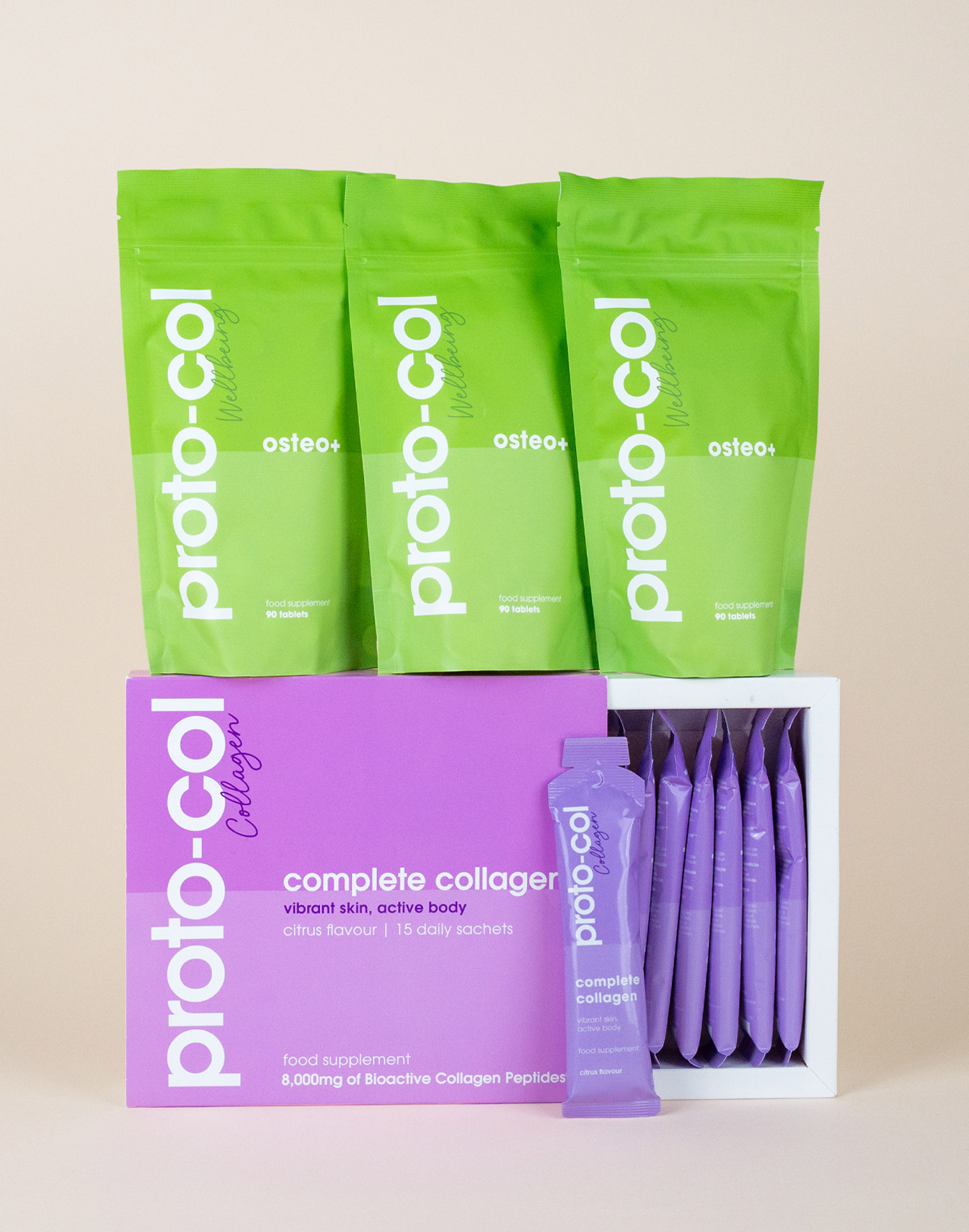 Complete Collagen -Take one sachet per day - Simply tear, drink and go. Alternatively, you can dilute into water for a drink. Each box contains 15 sachets.